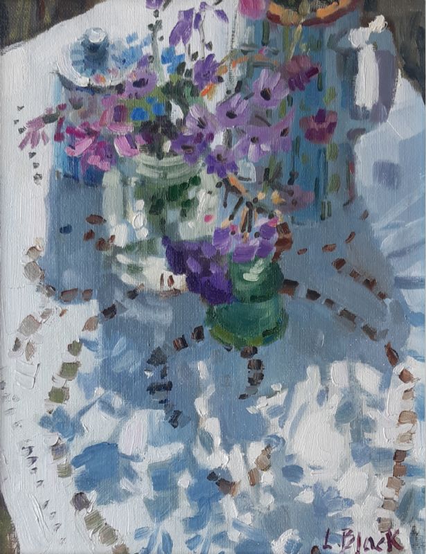 Popular still life and coastal artist living and working in Mousehole, West Cornwall. She became a fully elected member of the Royal Institute of Oil Painters in December 2025