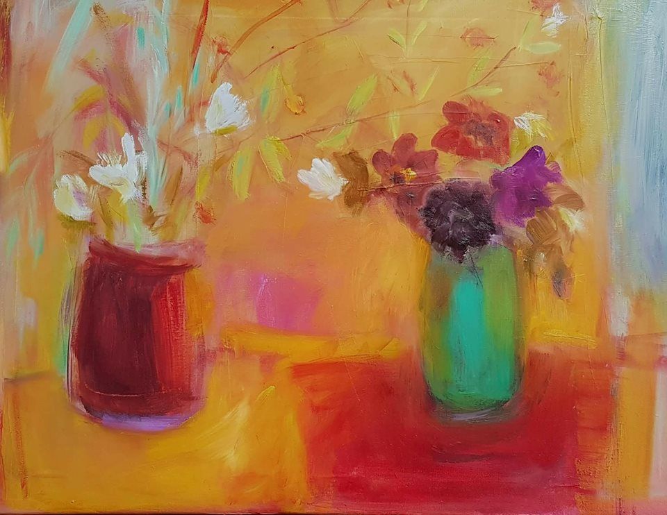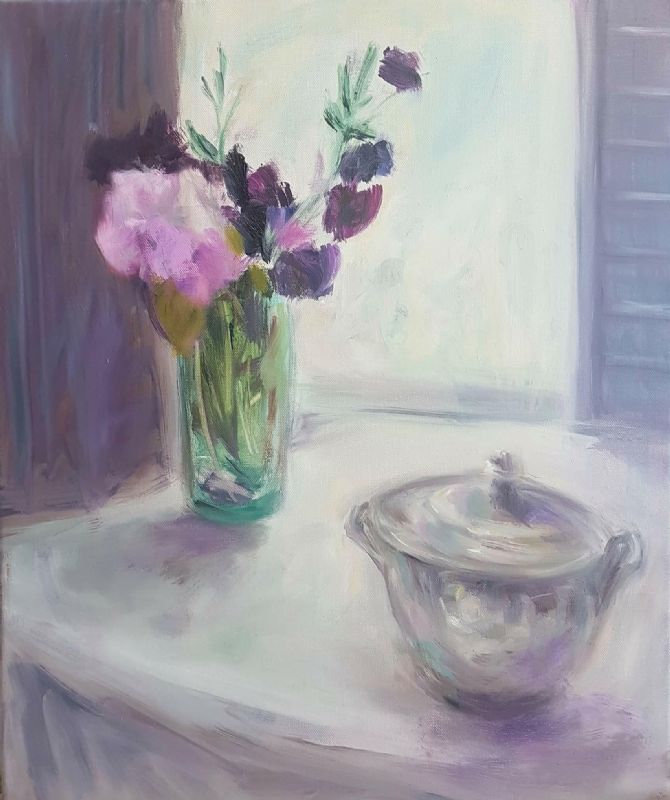 Edwina is an increasingly popular local artist living near the ancient fishing village of Mousehole. She paints predominantly abstract land and seascapes as well as floral still-lifes that are both peaceful and, paradoxically, full of movement. She has a style of brushwork that is both free, yet carefully considered and full of life. Her palette, brimming with light.
